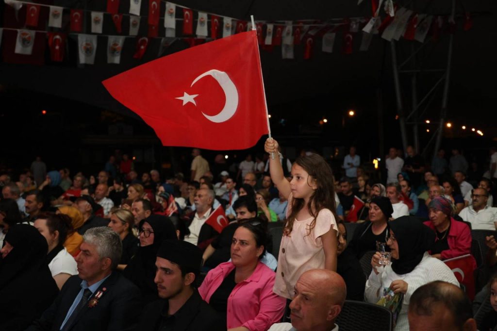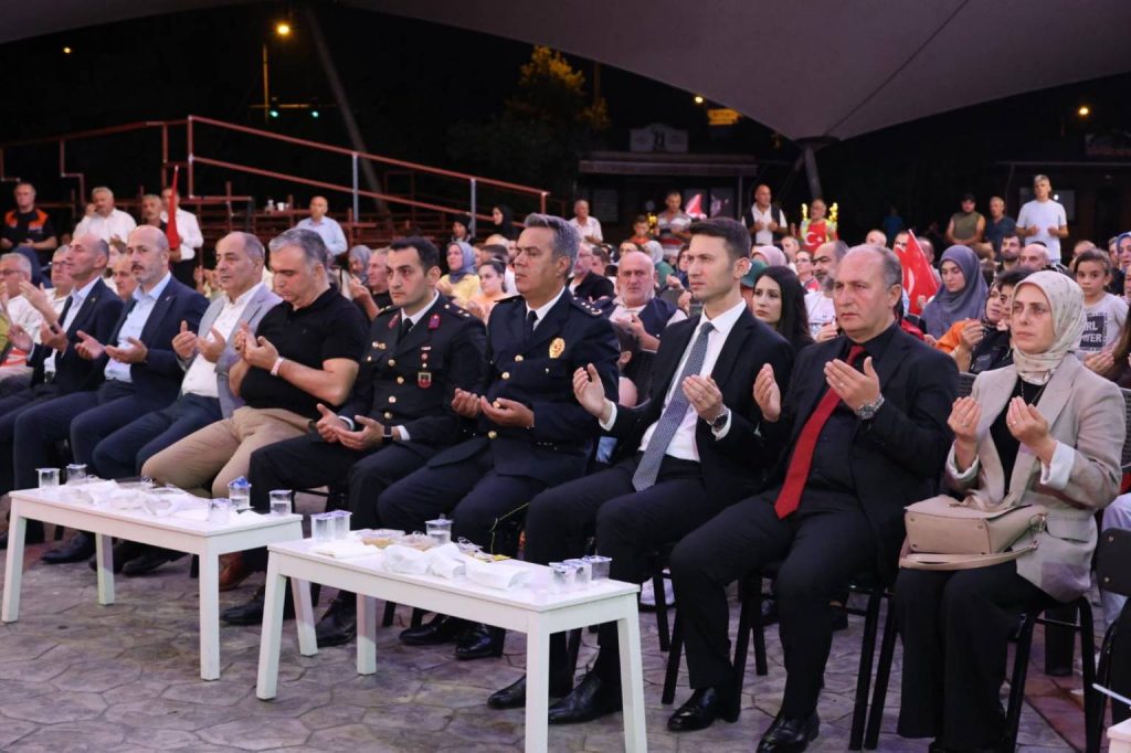 Türk bayraklarıyla programa gelen vatandaşlarımızın coşkusuyla başlayan etkinlik, saygı duruşu ve İstiklal Marşı’nın okunmasıyla devam etti. Ardından okunan Kur’an-ı Kerim tilavetiyle birlikte, 15 Temmuz 2016’da yaşanan hain darbe girişiminde şehit düşen kahraman vatandaşlarımız, askerlerimiz, polislerimiz ve tüm şehitlerimiz dualarla yad edildi.