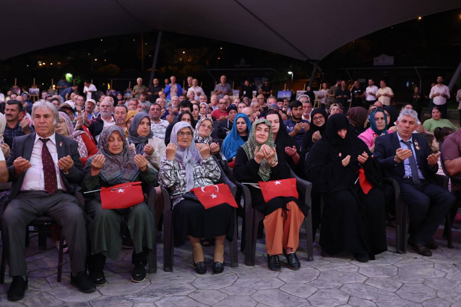 Türk bayraklarıyla programa gelen vatandaşlarımızın coşkusuyla başlayan etkinlik, saygı duruşu ve İstiklal Marşı’nın okunmasıyla devam etti. Ardından okunan Kur’an-ı Kerim tilavetiyle birlikte, 15 Temmuz 2016’da yaşanan hain darbe girişiminde şehit düşen kahraman vatandaşlarımız, askerlerimiz, polislerimiz ve tüm şehitlerimiz dualarla yad edildi.