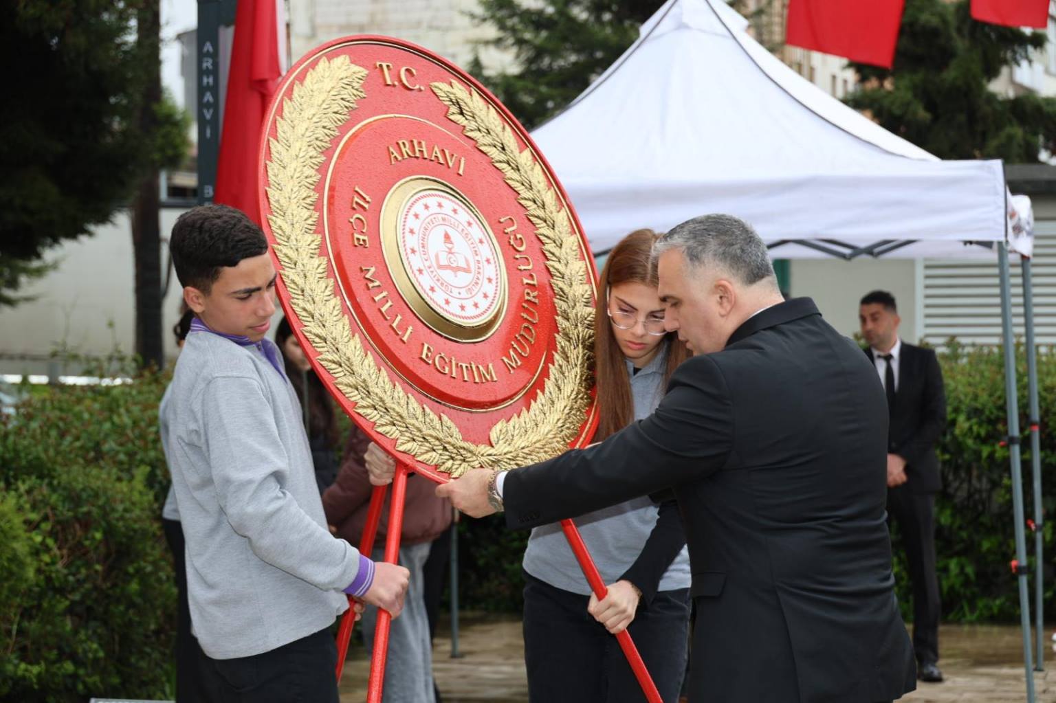 Kutlama programı, Atatürk Anıtı önünde gerçekleştirilen çelenk sunma töreniyle başladı. Arhavi Belediye Başkanı Turgay Ataselim’in yanı sıra ilçe protokolü, kamu kurumlarının temsilcileri, siyasi parti ve sivil toplum kuruluşlarının üyeleri ile çok sayıda öğrenci ve vatandaş törene katıldı. İlçe Milli Eğitim Müdürü Aytaç Akgümüş’ün çelenk sunumuyla başlayan program, saygı duruşu ve İstiklal Marşı’nın okunmasıyla devam etti. Günün anlam ve önemine ilişkin yapılan konuşmaların ardından anıt önündeki tören sona erdi.