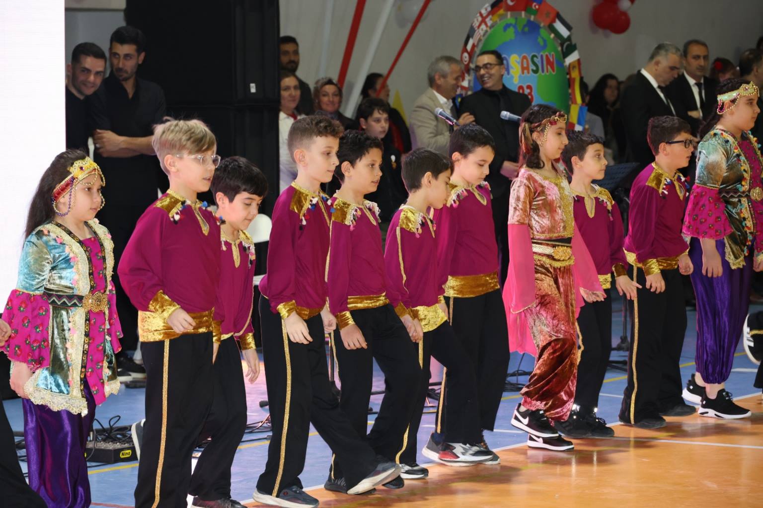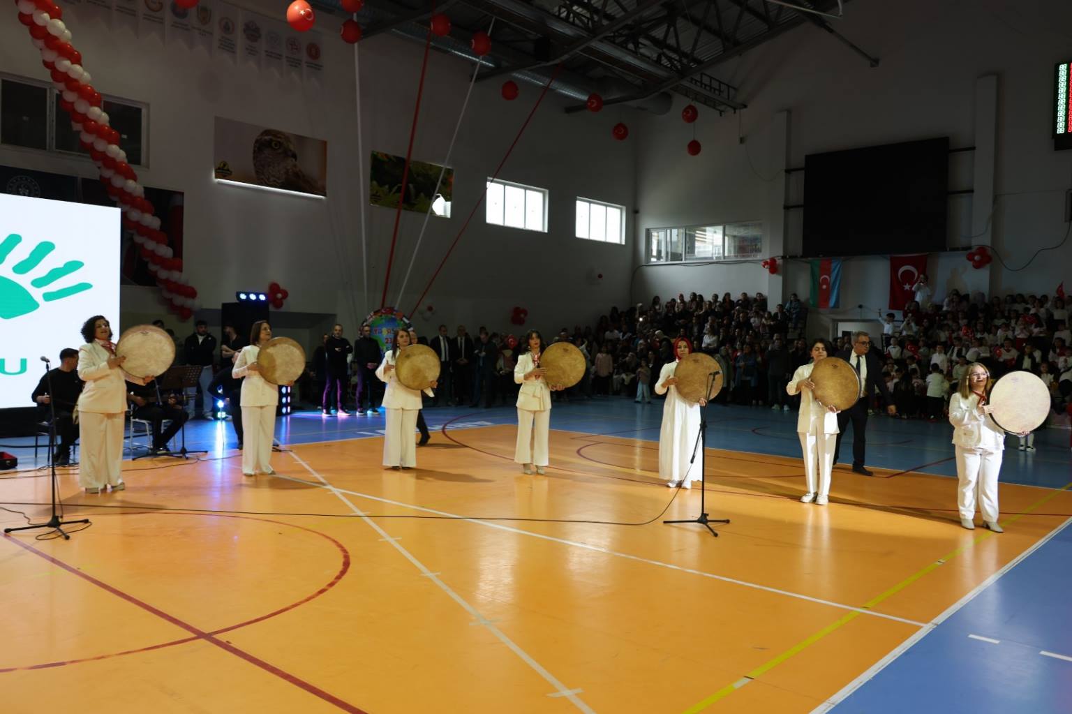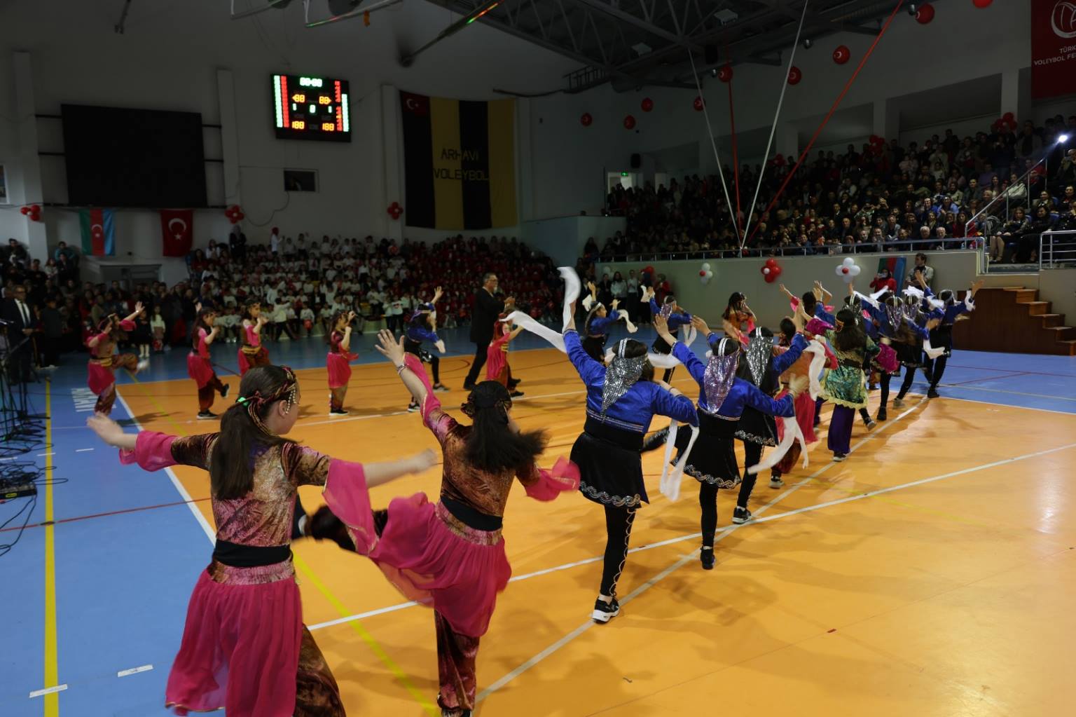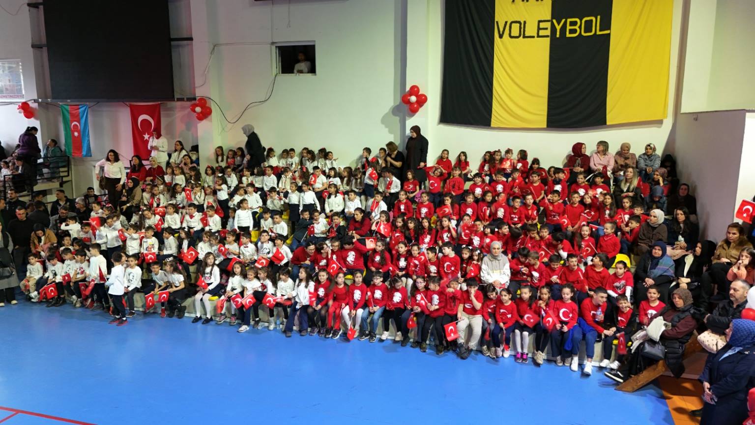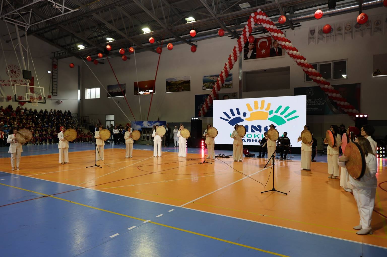 Programın ikinci bölümü ise ilçe kapalı spor salonunda gerçekleştirildi. Yoğun katılımın olduğu salonda, saygı duruşu ve İstiklal Marşı’nın ardından İlçe Kaymakamı Burak Çimşir ve Belediye Başkanı Turgay Ataselim, tüm katılımcıların bayramını kutladı. İlçe Milli Eğitim Müdürü Aytaç Akgümüş’ün konuşmasının ardından öğrenciler, birbirinden renkli gösterilerle sahne aldı. Mehmet Nazif Günal İlkokulu öğrencileri, velileri ve öğretmenleri ile kardeş okul Tunçkaya İlkokulu öğrencileri tarafından hazırlanan gösteriler izleyenlere unutulmaz anlar yaşattı. Turan Manafzade’nin müzik dinletisi ise bayram coşkusuna ayrı bir renk kattı.