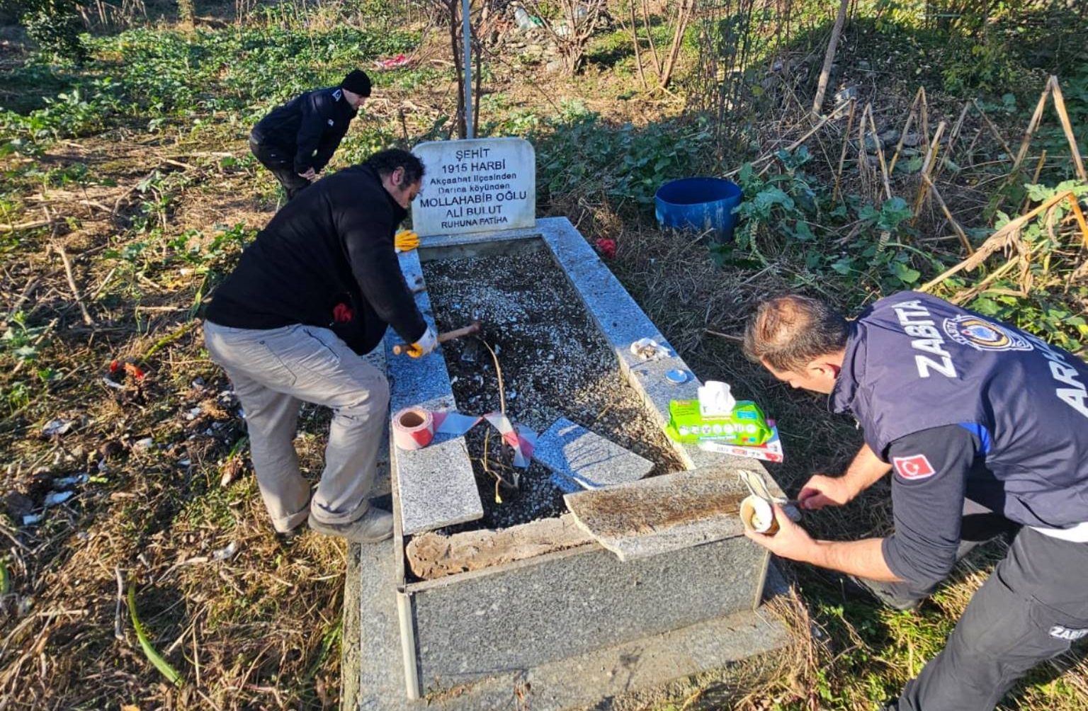 Arhavi Belediyesi ekipleri, Kapisre Köprüsü yanında bulunan şehit mezarında bakım ve temizlik çalışması gerçekleştirdi.